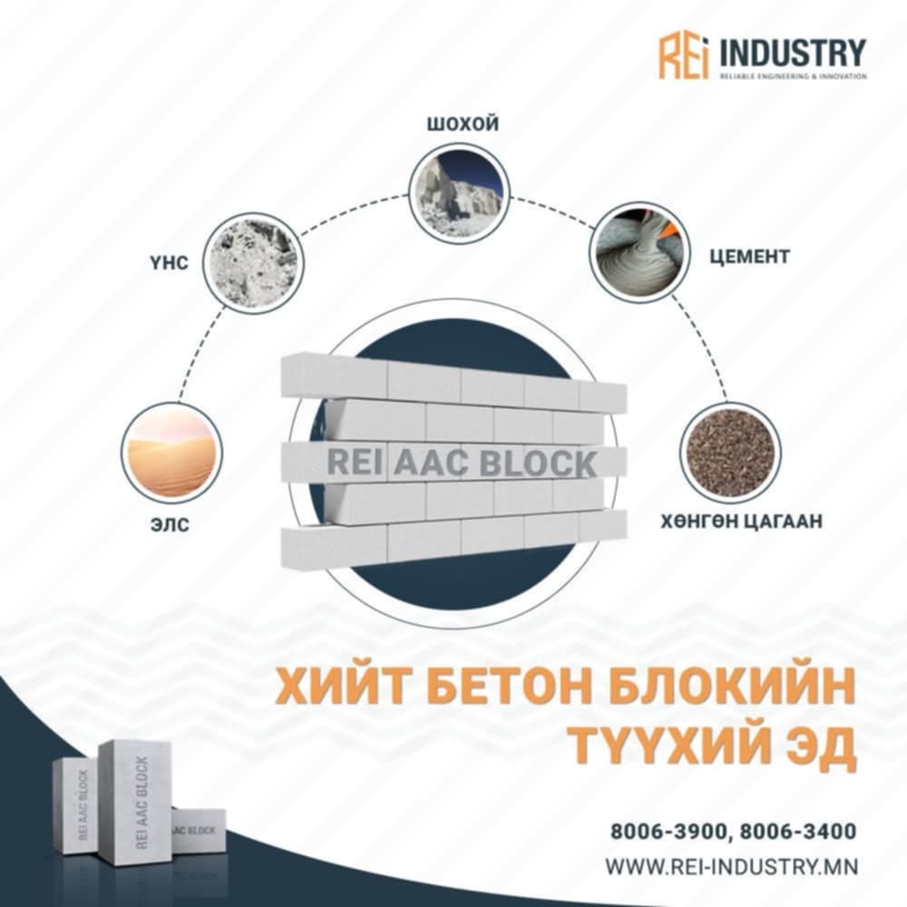 Рей индастри брэндийн хийт бетон блок нь хэмжээний хувьд урт болон өндөр нь тогтмол 600 х 240мм байх ба өргөн нь 80-360мм-ийн хооронд үйлдвэрлэгдэж байна.